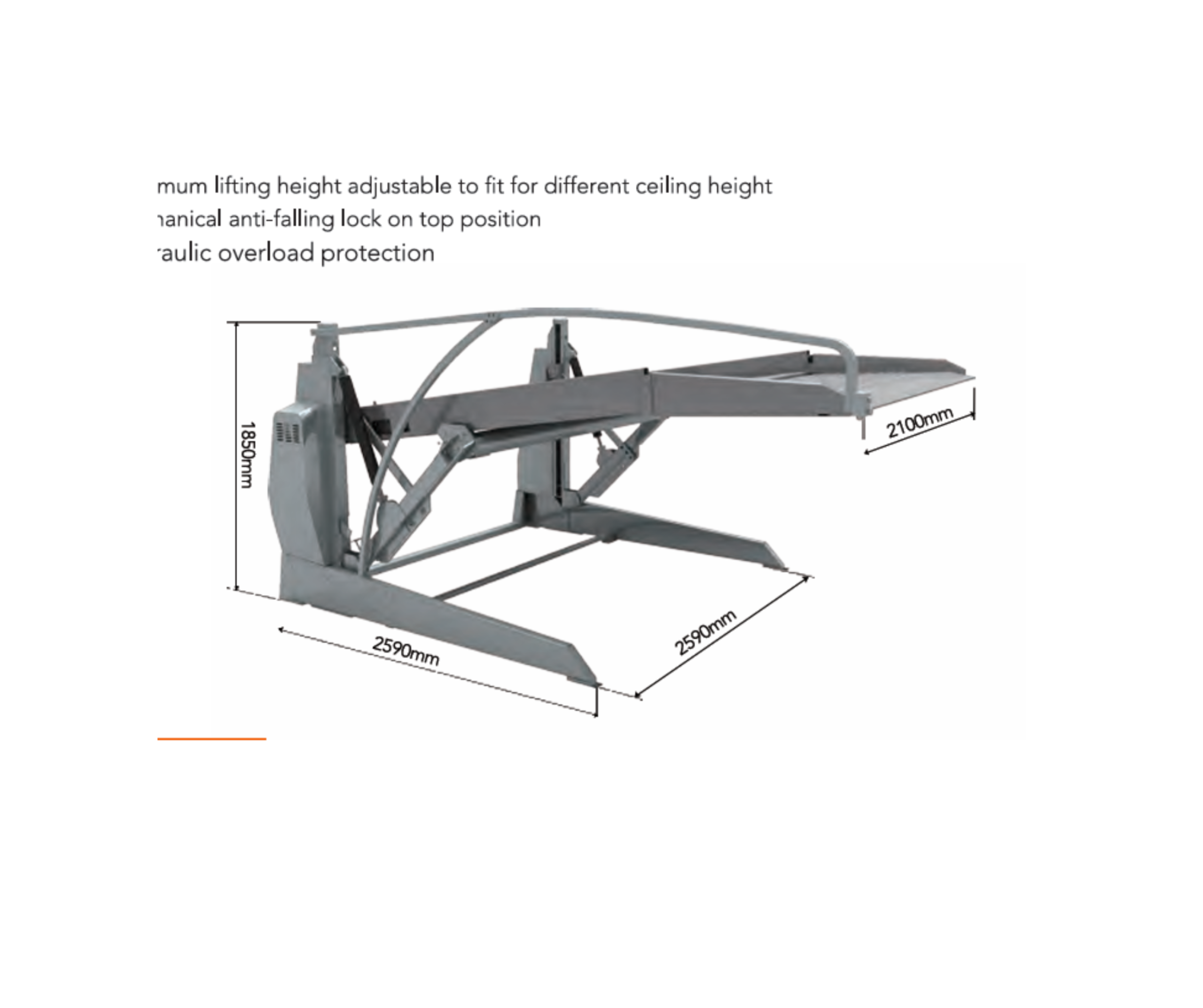 13. Platform can be stopped at different heights to fit various vehicles and ceiling height