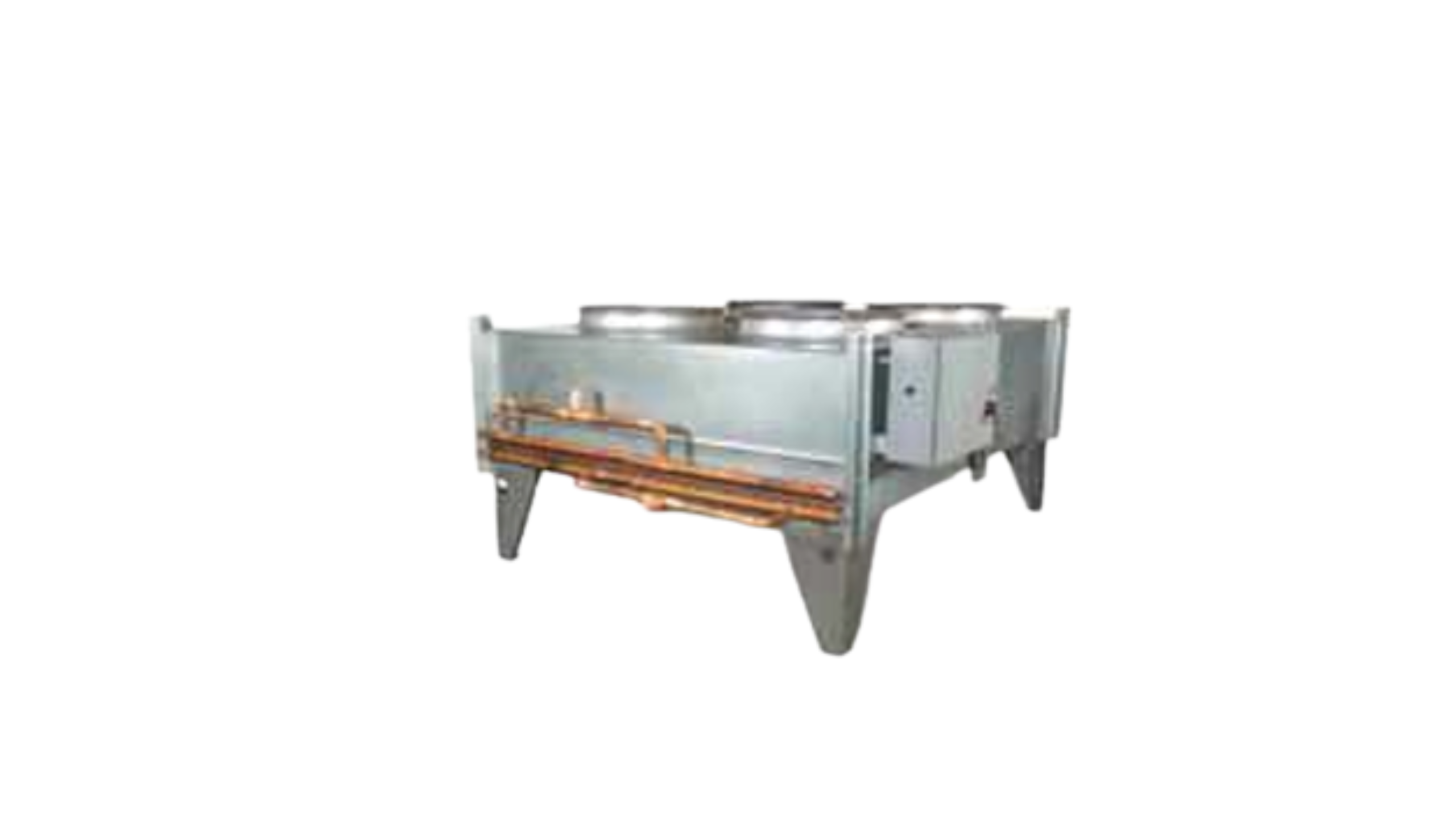 Model VDC Refrigerant: HFC-410A Standard Features: remote air cooled condenser, match with chillers (including YCRL) or refrigeration systems, panel includes disconnect switch and motor protection, flexible configuration from 1 to 12 fans Available Options: low-sound fans, manifold kit, fan cycling by refrigerant pressure or ambient temperature, VFD-ready motors, coil fin options, painted unit casing, multiple coil circuits per unit